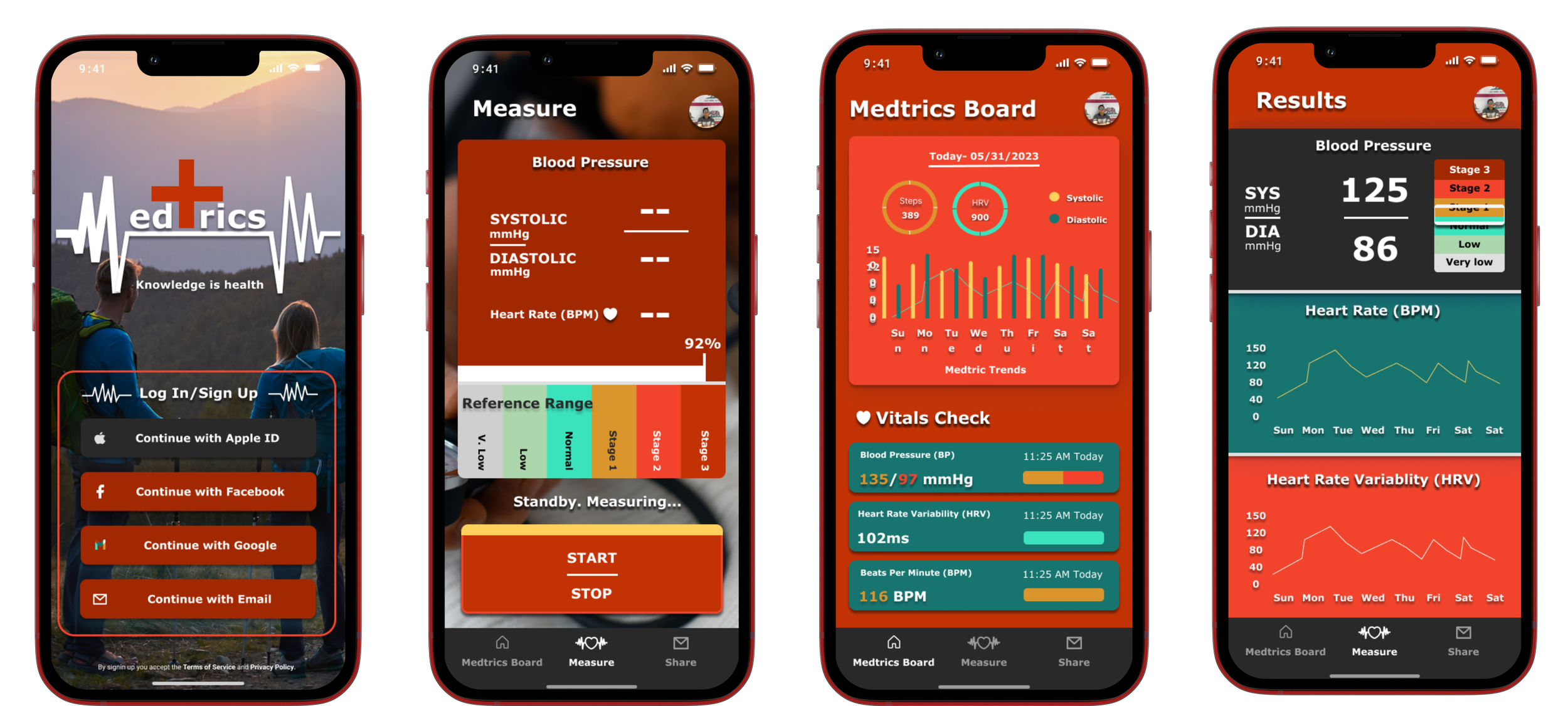 While the blood pressure monitors have evolved since their inception, the methods of measuring it have not changed. Many competitors only take into account blood pressure while ignoring other metrics that can steep someone towards a better well being. Medtrics offers blood pressure, heart rate variability and heart rate information and translates it into an digestible and informative manner for the user